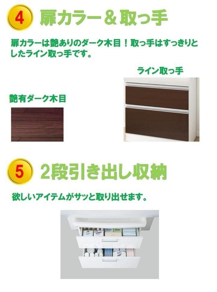| 本体/扉・引出し/取手 | 木組構造(パーティクルボード・MDF・合板)F☆☆☆☆ 底板点検口仕様 D-アクリル鏡面化粧板 /アルミ製 |